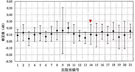 我們使用AQ2200-231光功率探頭作為計(jì)量標(biāo)準(zhǔn),上圖實(shí)驗(yàn)室編號(hào)14(紅色標(biāo)記)為本校準(zhǔn)實(shí)驗(yàn)中心的比對(duì)結(jié)果,我們?cè)?310nm和1550nm波長(zhǎng)光功率均取得了滿意的比對(duì)結(jié)果。另外從比對(duì)結(jié)果圖中也可以發(fā)現(xiàn)YOKOGAWA的光功率計(jì)具有較好的測(cè)量準(zhǔn)確度,其測(cè)量結(jié)果數(shù)值與主導(dǎo)實(shí)驗(yàn)室較為接近(1310nm的功率示值偏離參考值-0.03dB,