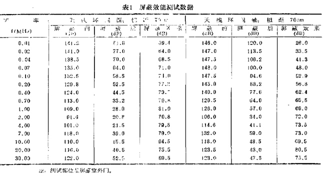 以某單位建造的屏蔽室為對象,我們對其進(jìn)行了屏蔽效能測試,表1提供了部分測試數(shù)據(jù)。