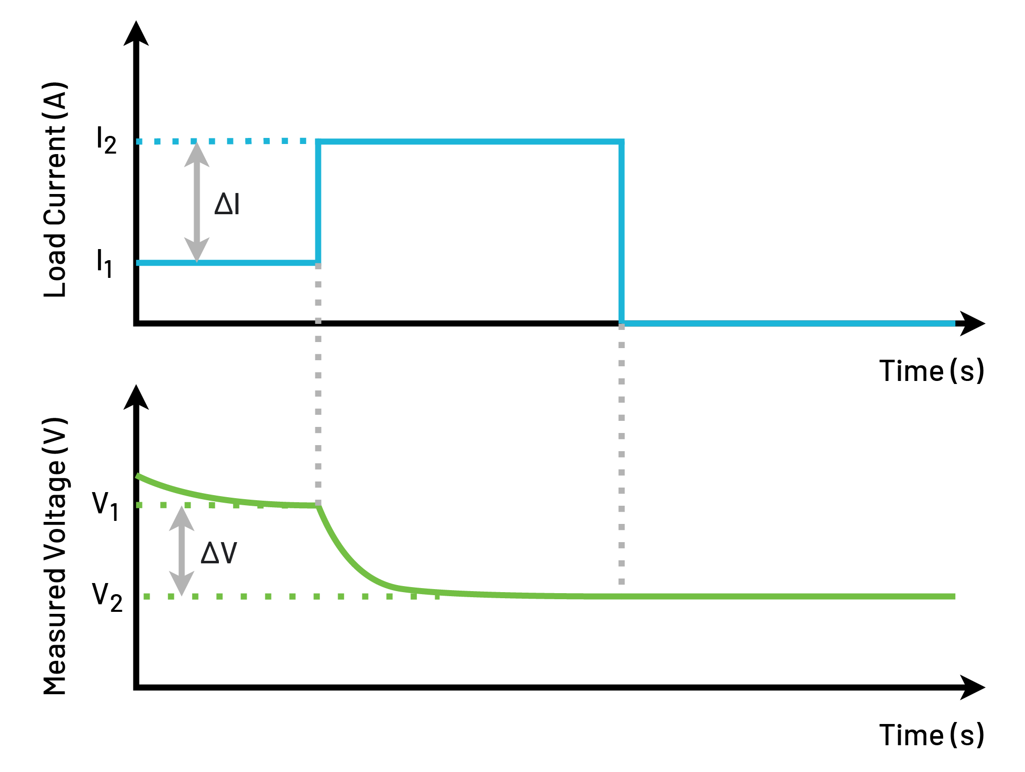 在一定的時(shí)間內(nèi)對(duì)電池施加直流電流。測(cè)量電池電壓的變化以計(jì)算電阻。圖 3中的圖表對(duì)此進(jìn)行了演示。