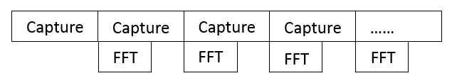 相對于傳統(tǒng)的掃描式頻譜分析儀,實(shí)時頻譜分析儀FFT輸出處理方式不一樣。傳統(tǒng)頻譜儀采用的FFT:采集信號—處理—顯示。在頻譜儀對數(shù)據(jù)進(jìn)行處理的時候,這段時間內(nèi)是采集不到信號的,信號遺漏的概率很大。