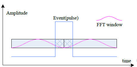 在圖5中,F(xiàn)FT每次處理完之后需要等待一段時間之后才會進(jìn)入下一次處理,如果某個瞬態(tài)信號剛好出現(xiàn)在某個FFT窗的邊緣,這個信號的幅度有可能被加窗影響到從而在FFT中得不到正確的體現(xiàn),如下圖6所示。
