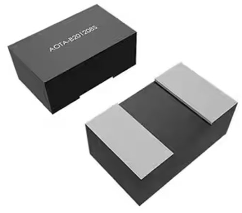 Abracon AOTA-B1412 系列的范例包括 AOTA-B141206SR33MT 和 AOTA-B141206SR47MT。這些微型模制電感器采用最小的封裝,尺寸為 1.4 mm x 1.2 mm(0.055 英寸 x 0.047 英寸),封裝高度僅為 0.65 mm(0.026 英寸)。AOTA-B141206SR33MT 的電感為 0.33 μH,額定電流為 3.5 A,DCR 為 32 mΩ,SRF 為 120 MHz。AOTA-B141206SR47MT 的電感為 0.47 μH,額定電流為 2.9 A,DCR 為 41 mΩ,SRF 為 115 MHz。