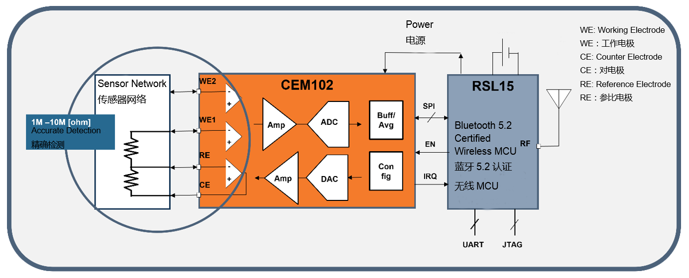 圖 5 - 安森美 CEM102 + RSL15 組合解決方案可實現(xiàn)無線電化學(xué)感知(來源:安森美)