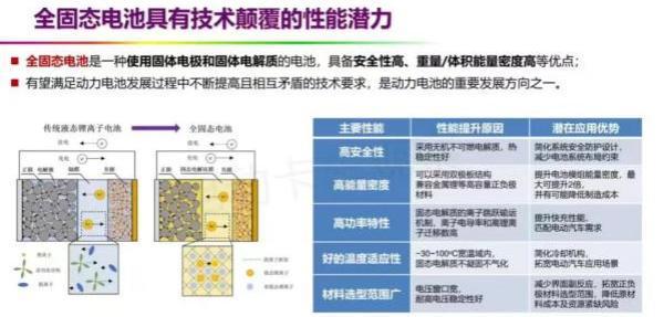 在業(yè)內(nèi)看來,固態(tài)電池——尤其是完全不含液態(tài)電解液的全固態(tài)電池,跟現(xiàn)有的液體鋰離子電池相比,之所以具有技術(shù)顛覆的潛力,是由于電池具有高安全性、高能量密度、高功率、寬溫度適應(yīng)性、材料的選擇范圍更廣等特性。