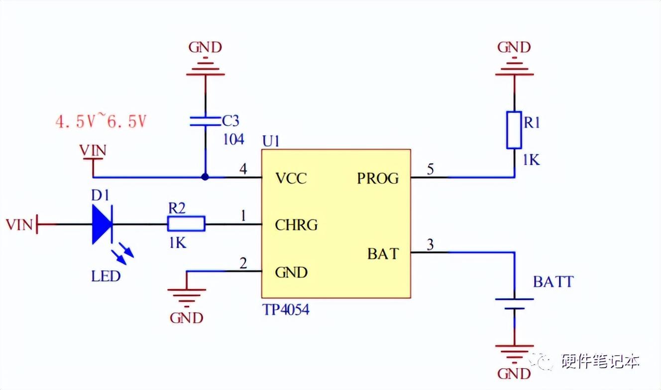 講述完鋰電池的充電電路原理,咱們可以選用TP4054芯片開發(fā)設(shè)計出鋰電池的充電方案。
